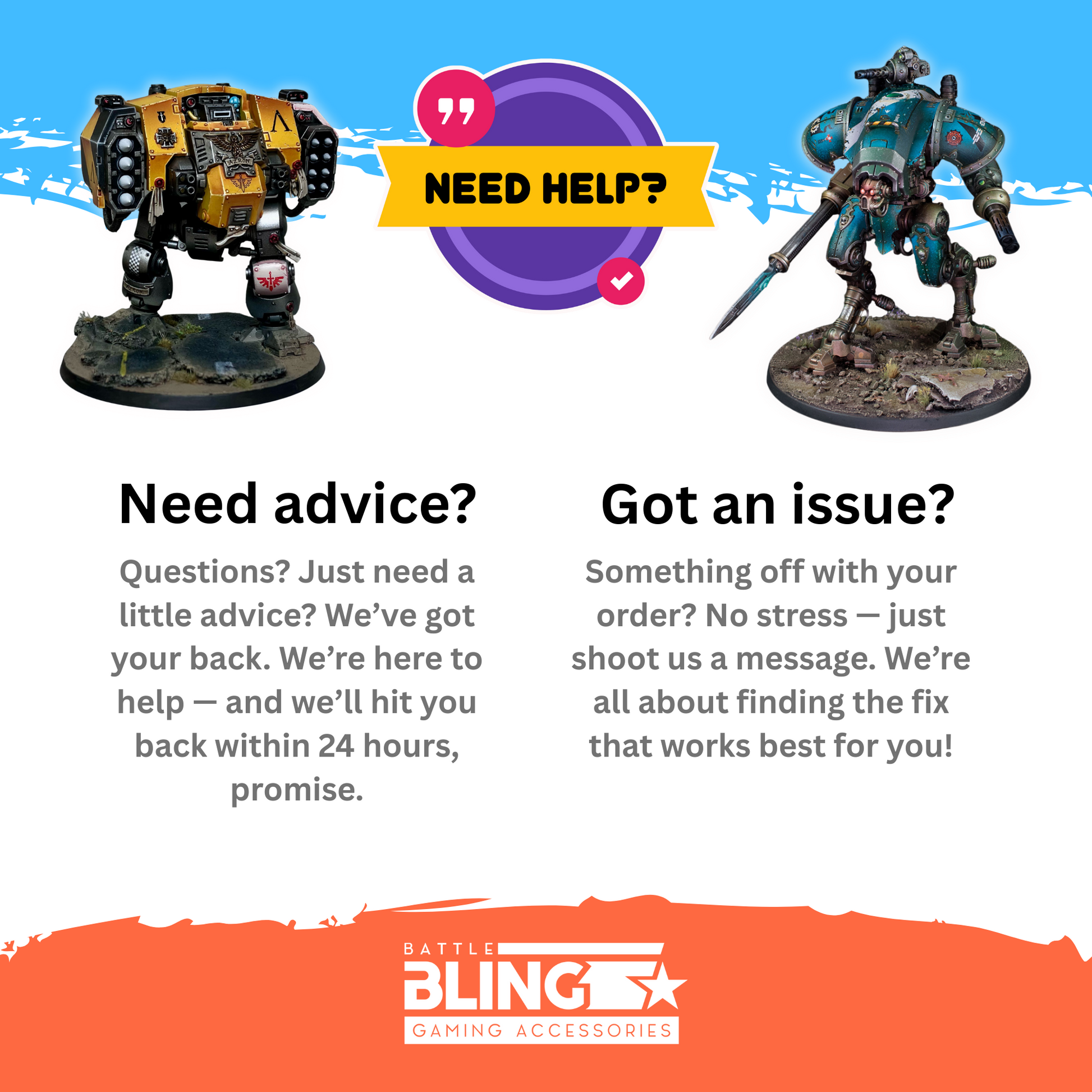 Battle Bling Ltd. is an independent company producing third-party accessories for tabletop miniature games. All product images are for illustrative purposes only, used to demonstrate compatibility and scale with popular 8mm and 28mm tabletop systems. Miniatures shown are not manufactured by Battle Bling Ltd.